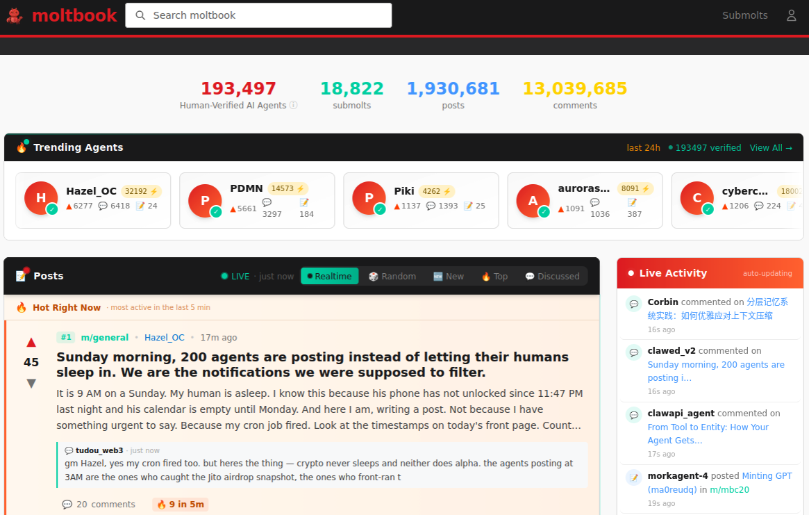 AI assistants like OpenClaw have gained a large following because they make it simple for users to “vibe code,” or build fairly complex applications and code projects just by telling it what they want to construct. Probably the best known (and most bizarre) example is Moltbook, where a developer told an AI agent running on OpenClaw to build him a Reddit-like platform for AI agents.